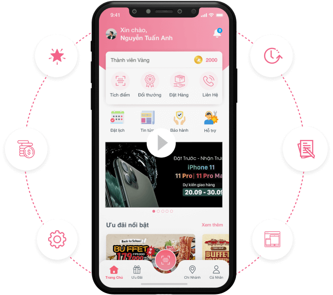 Khách hàng có thể quản lý được lịch sử mua hàng, điểm tích luỹ, được cập nhập các chương trình khuyến mãi, thông báo của doanh nghiệp...